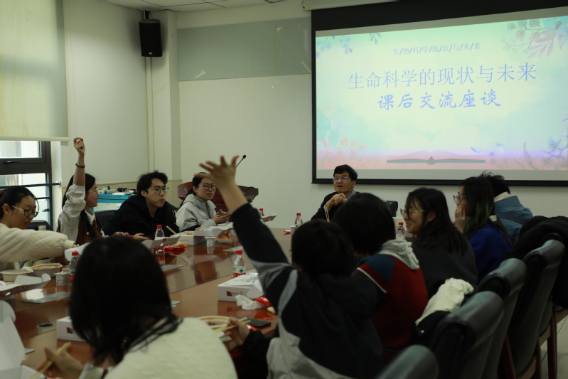 课后,陈佺教授与十余名员工代表在生物站会议室A110面对面亲切交流,师生全程畅所欲言,气氛活跃。参加座谈会的同学们就学习经验、职业发展、科研方向等方面的疑问向陈佺教授 “取经”,得到了陈佺教授的耐心解答,陈佺教授还勉励同学们勇于创新,勇于实践,将自己的兴趣与专业相结合,未来能更好的回馈母校,回馈社会。