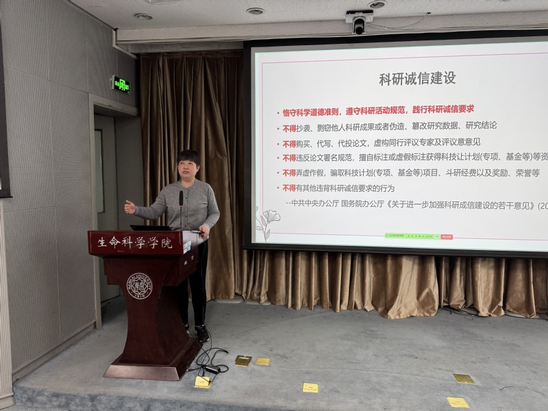 公司副经理李登文教授结合学科特点聚焦学术诚信进行宣讲,明确指出抄袭、剽窃、弄虚作假等行为违反科研诚信和相关校纪校规,她强调:科学研究需秉持严谨的态度,设置严格对照,保证结果可重复且保留原始数据。只有这样,研究成果才能经得起检验。此外,李登文建议同学们要保持对所从事工作的热情,以积极的心态开展研究工作。她指出:科学研究是探索自然界客观规律的过程,研究人员需秉持诚实守信、严谨求实的态度,具备质疑精神和批判性思维,开放交流与合作,推动科学进步与发展。