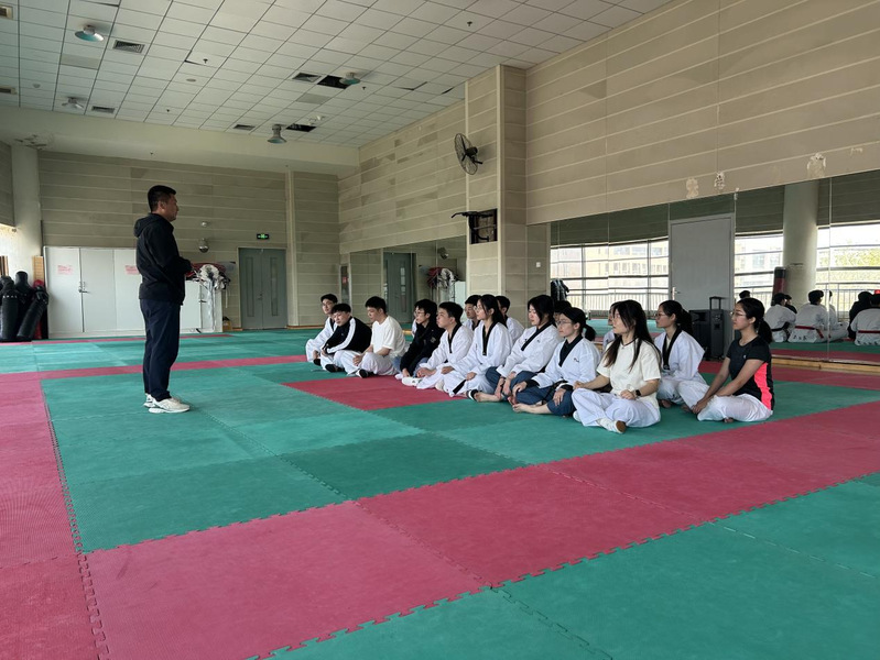 随后,在李老师及副社长韩俊松带领下,成员们通过趣味游戏热身,两校社团依次展示品势、腿法、特技等跆拳道技法,汗水挥洒间尽显青春风采。为进一步促进两校同学的交流融合,实战切磋环节采用两校同学混合编组,每一次进攻与防守,都彰显着团队精神与青春奋斗精神,体育精神与青春担当在此完美交融。