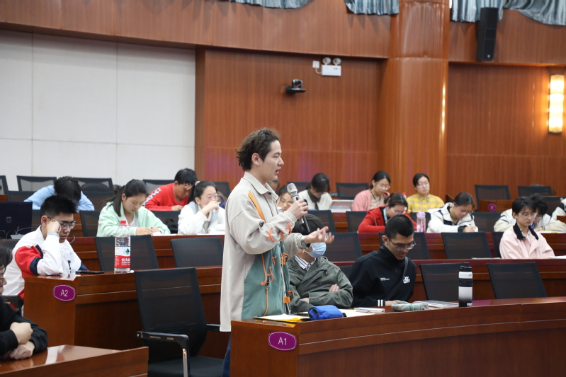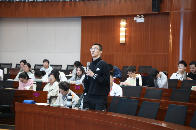 在课后独具特色的名师面对面交流环节中,刘老师与近十位选课同学代表进一步深入交流,分享科研经历和人生感悟,并勉励同学们要在本科期间勤奋学习、刻苦钻研,提升多方面本领,为实现理想而不懈努力。(摄影:柴子辰)