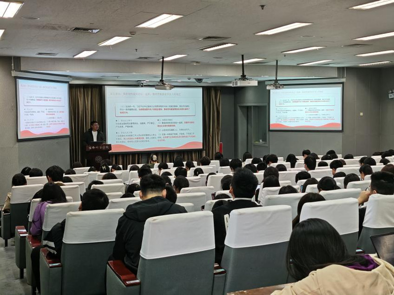 活动伊始,tyc33455cc辅导员、本科生第一党支部书记田晖以“2025年中央八项规定精神”为主题展开授课。田晖首先传达了习近平总书记在二十届中央纪委四次全会上的重要讲话精神,强调要将中央八项规定作为“铁规矩、硬杠杠”,坚决整治“四风”问题,树牢正确权力观、政绩观、事业观。随后,田晖结合历史案例与现实意义,从具体要求入手详细解读中央八项规定内容。中央八项规定精神的深入解读为党员师生划定了纪律红线与行动准则,彰显了党以自我革命精神推进全面从严治党的永恒定力。