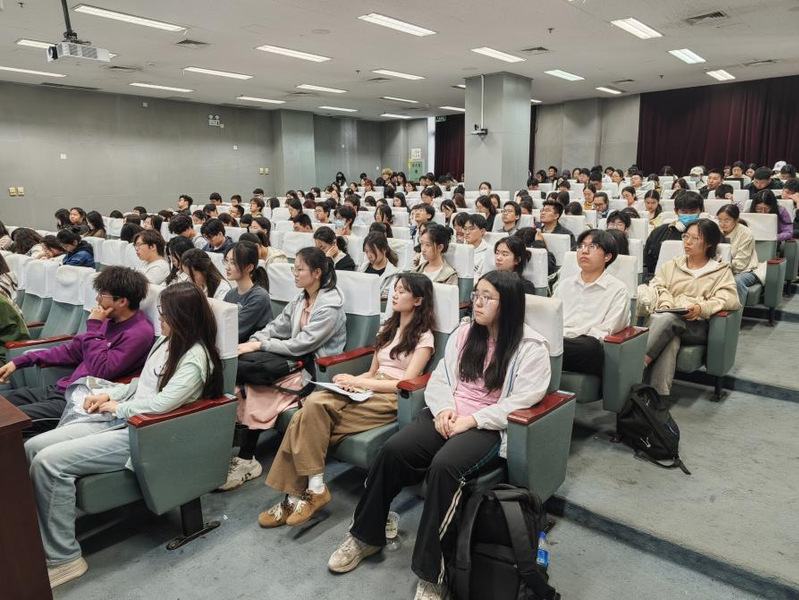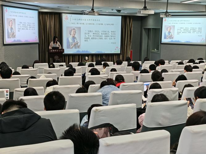 文公司“诗话中国”宣讲团成员张紫煜、曹晶晶带领师生走进周恩来总理与叶嘉莹先生的诗词世界。张紫煜通过解读周恩来青年时期诗作《春日偶成》和《大江歌罢掉头东》,带领党员师生们感受周总理“面壁十年图破壁”的救国理想与革命豪情;曹晶晶通过解读叶嘉莹的《哭母诗》及晚年诗作,带领师生们感悟叶先生在动荡中坚守文化根脉的坚定决心和“一灯燃百千灯”的赤子之心。宣讲团以诗为媒打通历史与现实的情感脉络,串联起两位伟人的人生轨迹,诠释了诗词中蕴含的家国情怀与文化担当,让革命先辈的理想信念与文化大家的赤忱情怀跨越时空,成为滋养党员师生精神世界的丰厚养分。