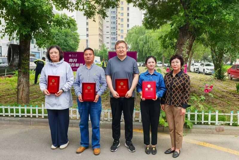 随后双方领导共同为“南开中药百草园”与“劳动教育基地”揭牌。为了充分发挥“五老”及专业老师的教育引领作用,拓展“三全育人”阵地,活动上,特别聘请退休教师原遗传学与细胞生物学系宋文芹教授、专业教师植物学和生态学系石福臣教授、遗传学与细胞生物学系王春国教授以及后勤服务处环境科的赵涧丹老师担任“劳动育人导师”,tyc33455cc党委书记谢桂玲为四位专家颁发聘书。王春国教授作为劳动育人导师发言,他指出,百草园不仅是药田,更是开放的“自然实验室”。在这里,同学们可以观察药用植物的生长周期,研究土壤与生态的关系,甚至运用现代生物学技术探索中医药的现代化路径。他表示,作为劳动育人导师,将陪伴大家从选种育苗到收获成果,让劳动有科学支撑、文化浸润,让创新思维在实践中落地生根。