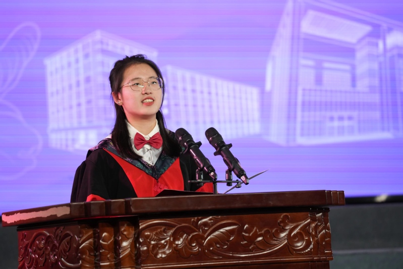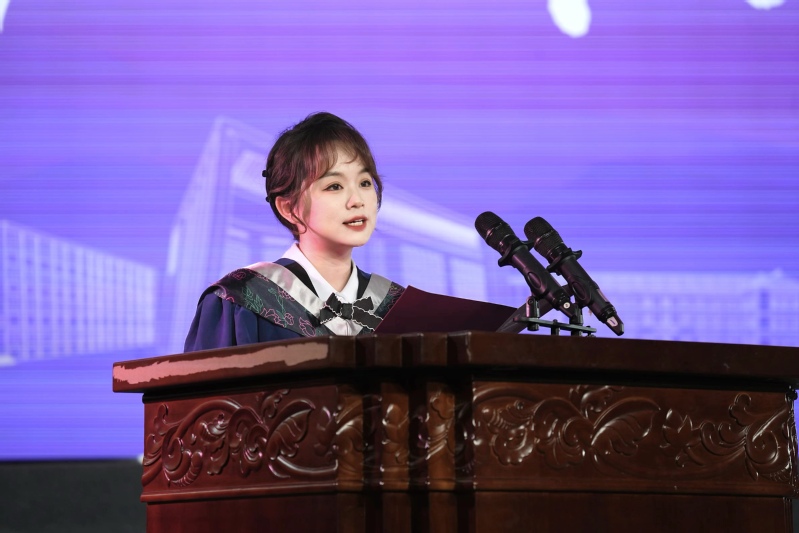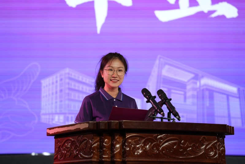 2022级本科生匡晓晨也代表在校生进行了发言,表达了对学长学姐们的感激与祝福。她代表在校生许下“胸有丘壑,行踏热土”的豪壮诺言,期待与学长学姐们在服务家国、奉献社会的大路上再度重逢、并肩而行。