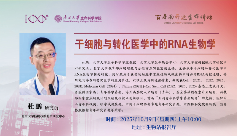 10.9 10:00百年南开之生命讲坛-杜鹏