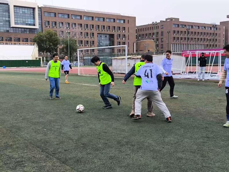 仪式结束后,足球队队长王恺老师为参训的首批教工队员发放了崭新的定制队服。队员们换上统一的战袍,精神抖擞地投入到了首次队内训练中。训练赛环节,队员们虽然平日忙于教学科研,但一踏上球场便迅速进入状态,跑动、传球、射门,场面紧张激烈而又充满欢声笑语,充分享受着足球运动带来的快乐。
