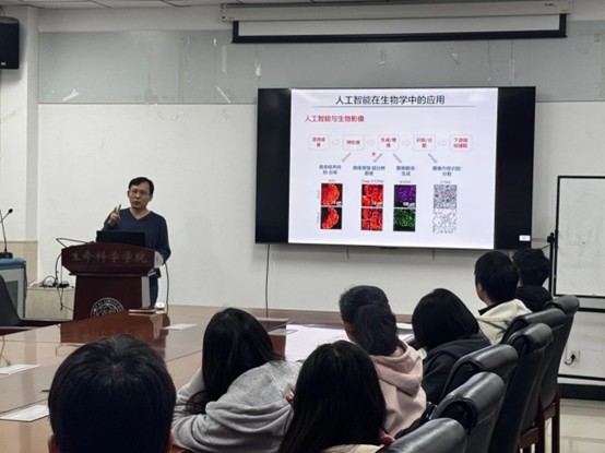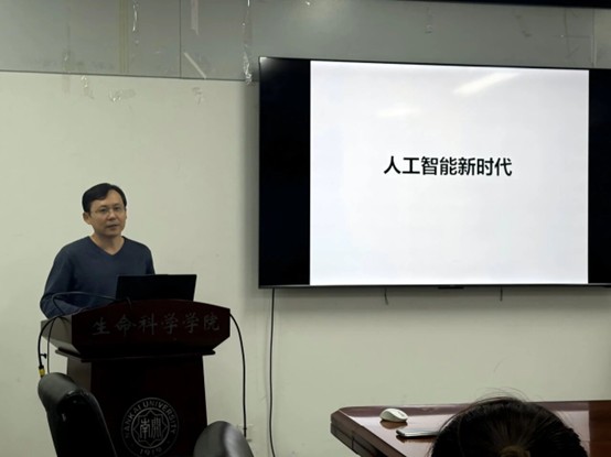 在交流环节,师生们就“AI+生物”方向的选择、生物专业的员工如何掌握AI技术、以及数据隐私等话题展开了热烈讨论。大家一致认为,在“人工智能新时代”背景下,生命科学领域的学子不仅需要扎实的专业知识,还需学习掌握AI这一强大工具,为生物领域提供助力。